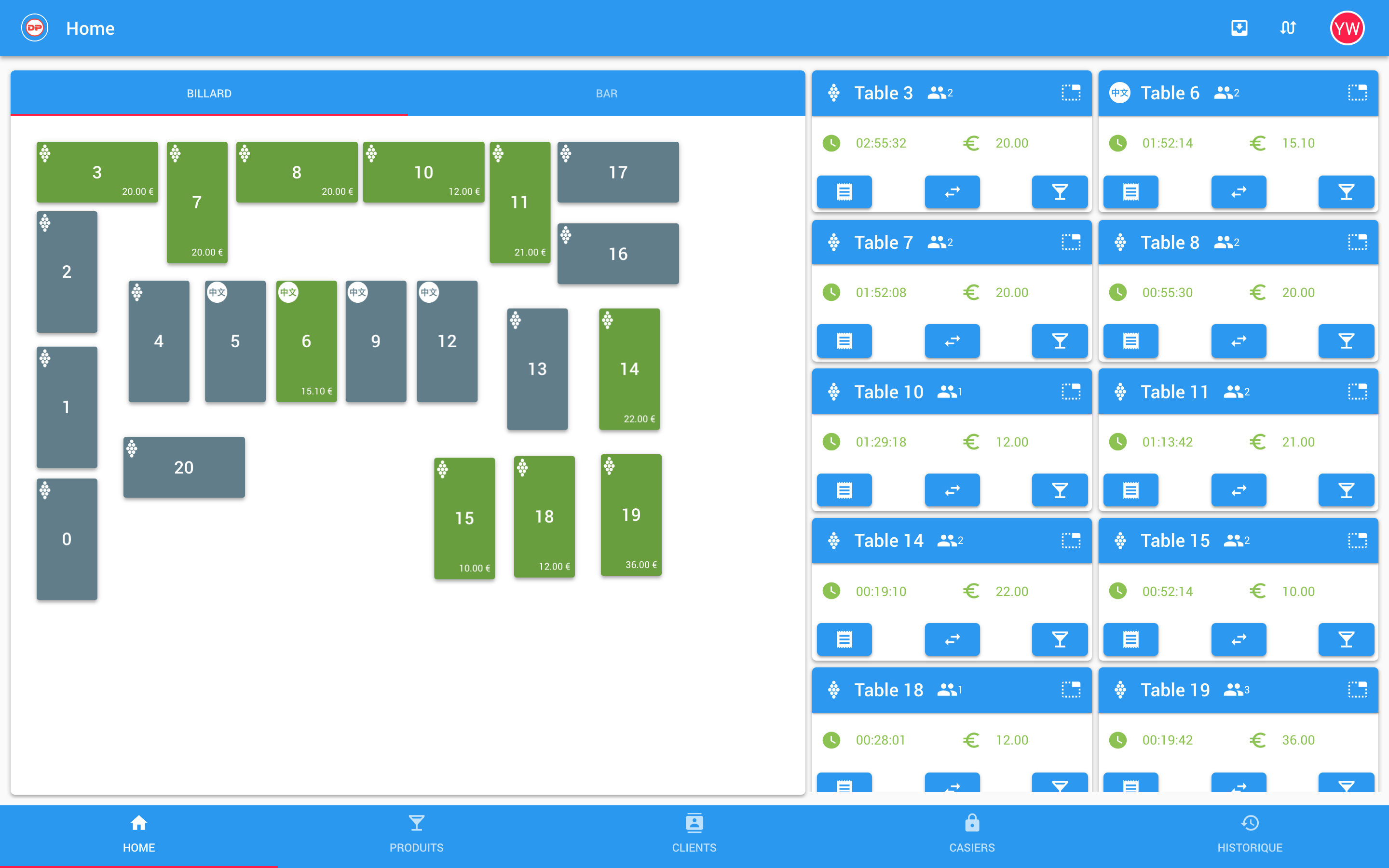 Gérez facilement les tables (snooker/Carambole/Américain/Chinese), les abonnements membres et les casiers